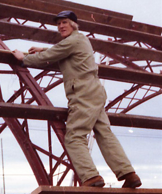 Company founder Theodore Jurgens hands-on during the constuction of the company workshop, Heads Rd Wanganui approx 1978